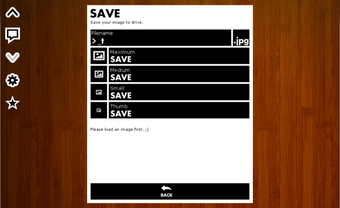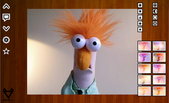 Foto's im- en exporteer je met knoppen linksboven in het scherm en rechtsboven vind je schuifregelaars voor het aanpassen van kleuren, contrast en helderheid. Rechtsonder tref je een tiental filters die een soort regenboogwaas over je afbeelding werpen. De 10 filters zijn naar smaak aan te passen, maar helaas mist een knop om de boel terug te zetten naar de standaardwaarden.
